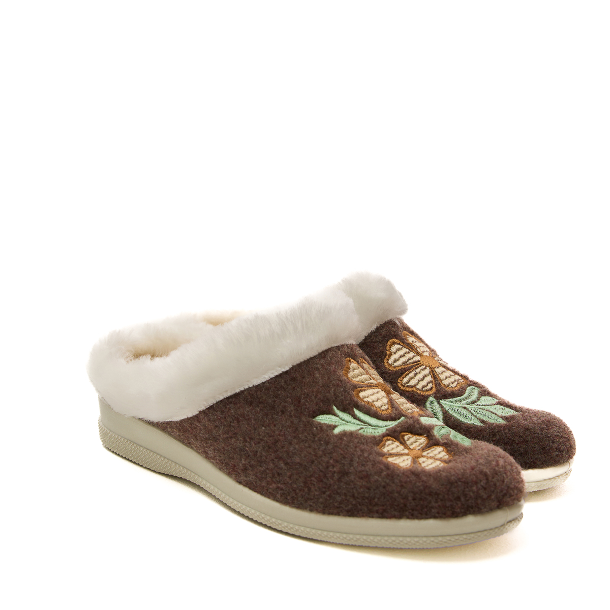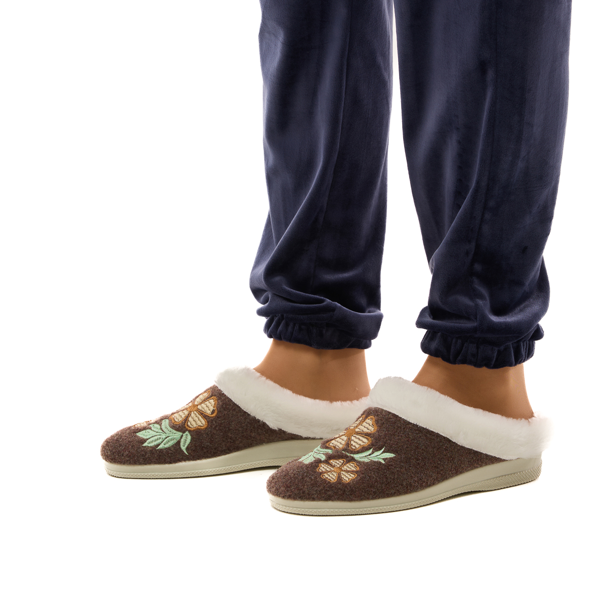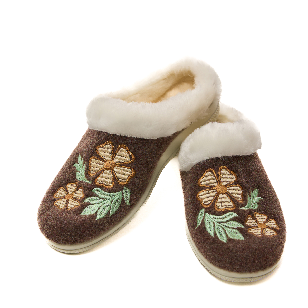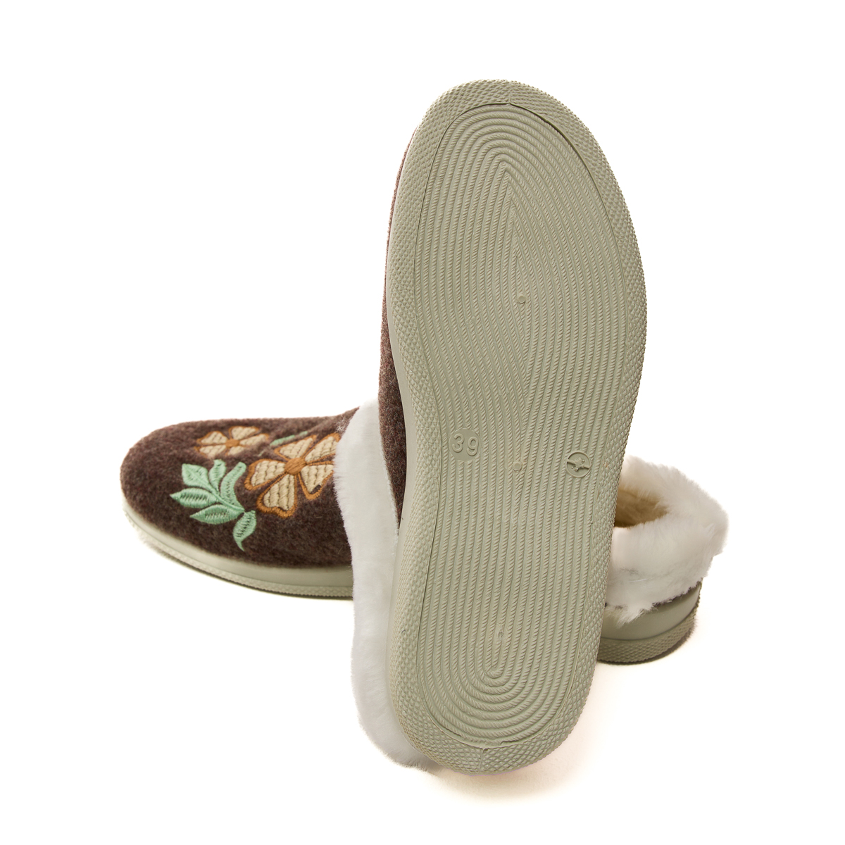 Верх тапочек изготовлен из плотного войлока. А это значит, что тапочки не протрутся, не растянутся! Будьте уверены - тапочки прослужат Вам долгие годы! И только взгляните на этот удивительный цветочный орнамент. Так красиво, так по-домашнему!