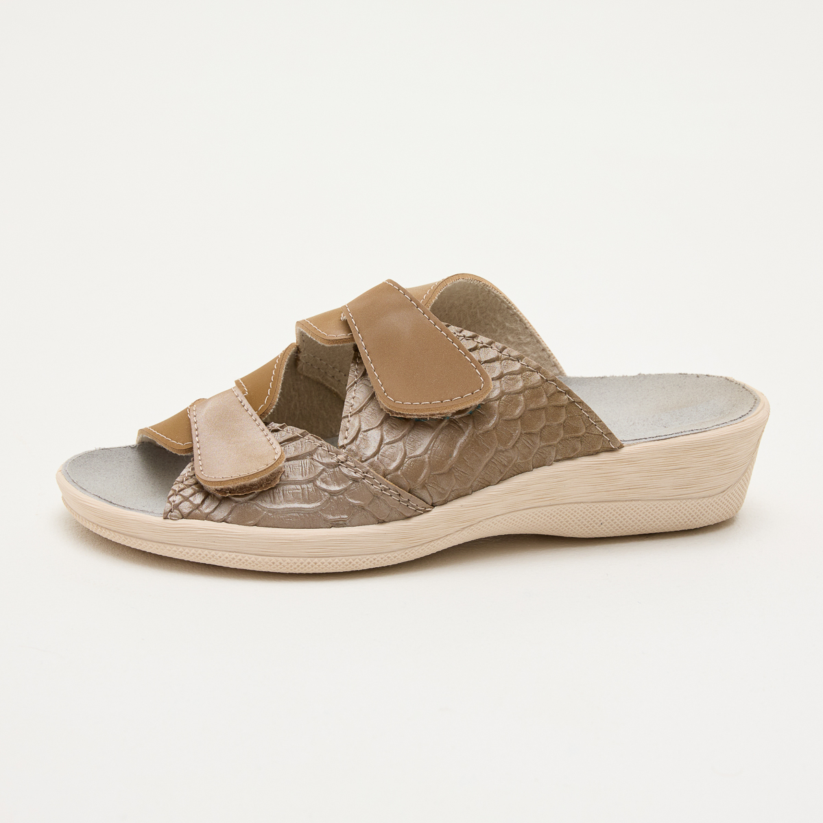 Босоніжки Стиль призначені прикрасити ваш образ! Тепер вам не доведеться жертвувати зручністю заради краси, навіть якщо у вас чутливі стопи. Легкість регулювання ширини взуття зробить процес носіння максимально комфортним. Пропонуються варіанти у синіх, білих та коричневих тонах, кожен з яких оформлений унікальною текстурою, що нагадує рептилію.