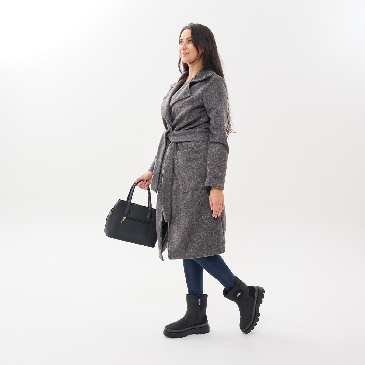 Функціональний вибір для активних жінок, які не бояться снігу та дощу. Верх виконано з водовідштовхувального текстилю, який утворює бар’єр для вологи та вітру, забезпечуючи сухість навіть під час мокрого снігу.Тепле еко-хутро всередині зберігає тепло при низьких температурах, а легка гнучка підошва з ПВХ забезпечує стабільність і чудове зчеплення з поверхнею.
