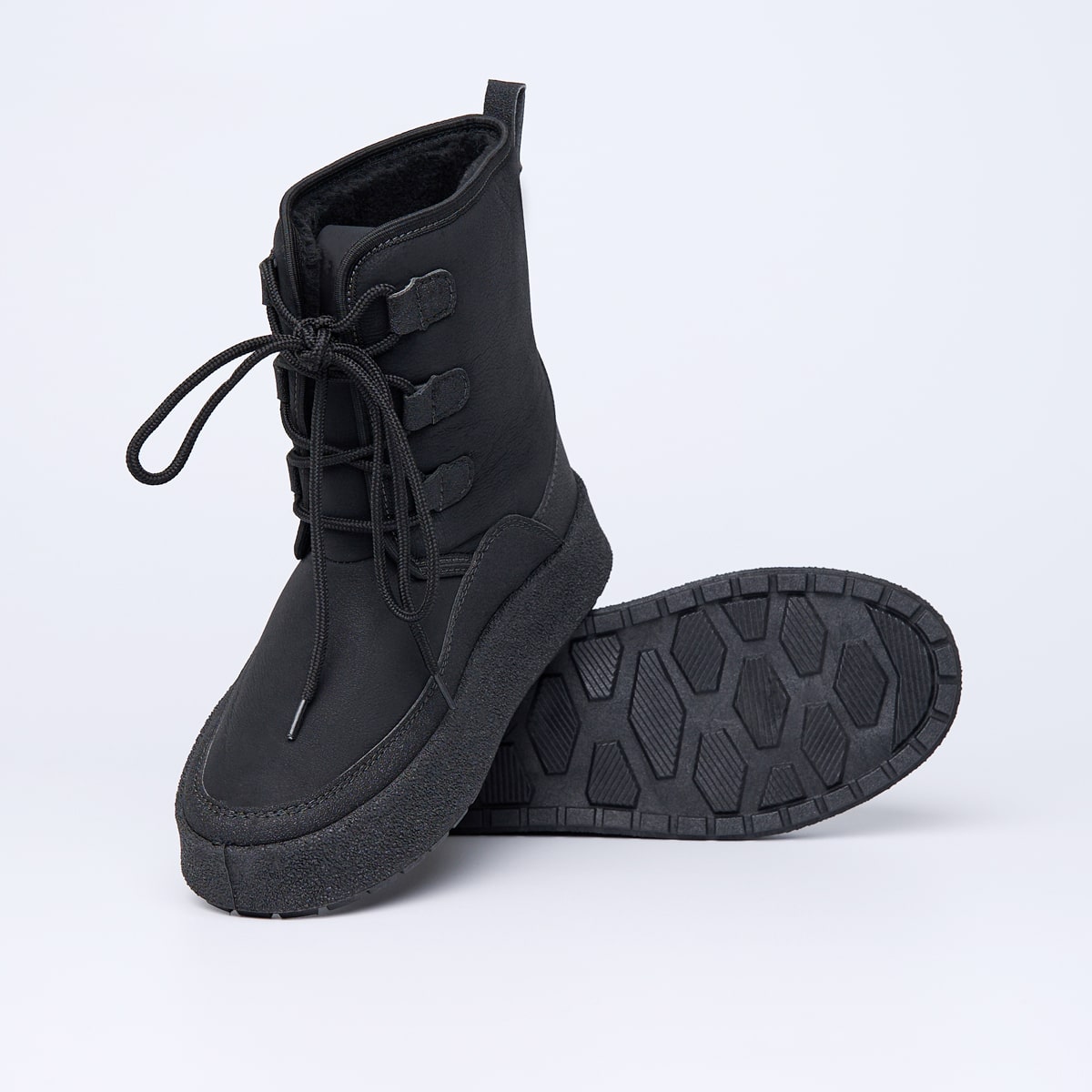 Внутрішнє оздоблення з теплого еко-хутра та анатомічна форма устілки забезпечують м’якість і термоізоляцію. Навіть при тривалому носінні ноги залишаються в теплі й без втоми.