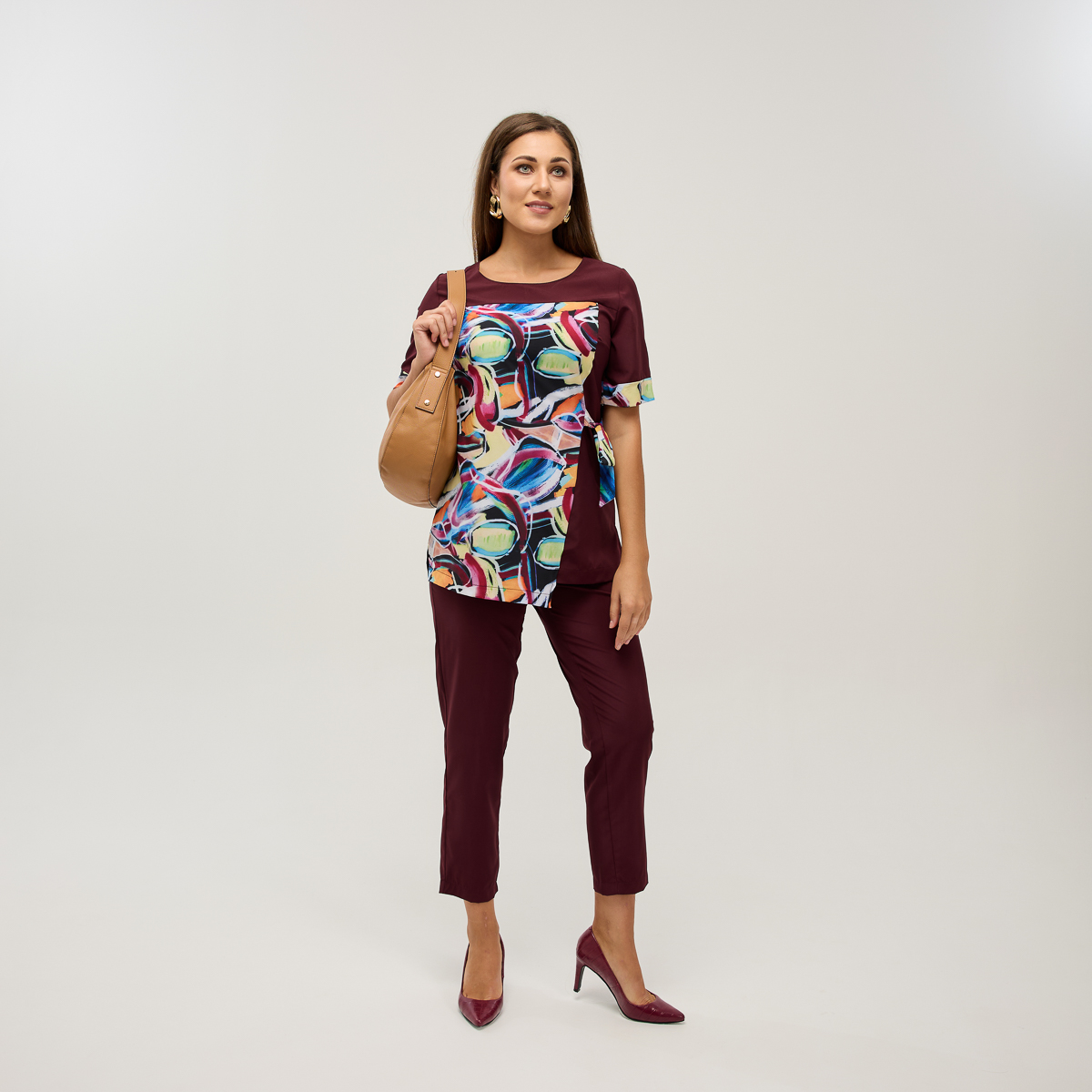 Ребекка - костюм, який миттєво додасть вишуканості вашому образу! Пошитий з неймовірно м'якої та легкої тканини. Унікальний крій блузки підійде для будь-якого типу фігури та підкреслить її жіночу привабливість. Квітковий малюнок додасть свіжості, а скорочені, легко облягаючі брюки з кишенями акцентують увагу на вишуканості ваших ніг.