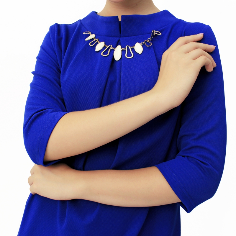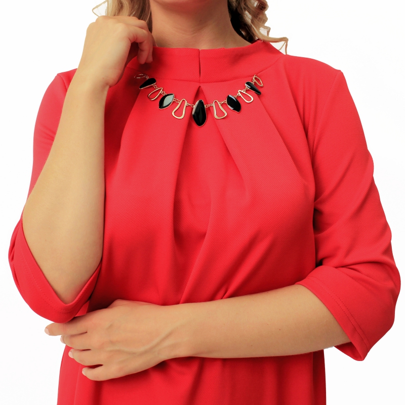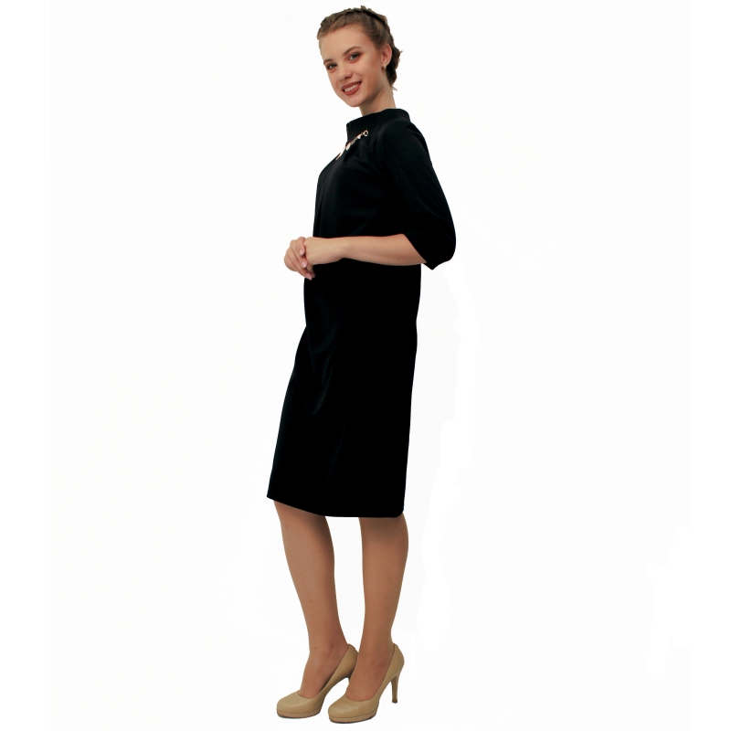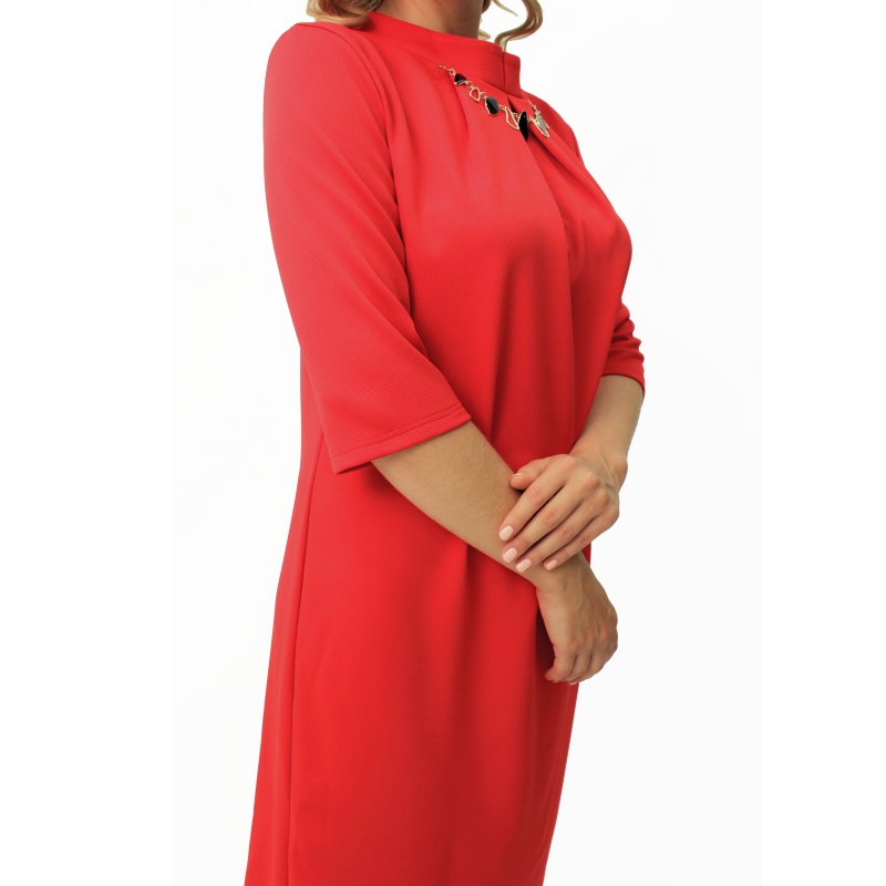 Плаття "Бритни" відмінно виглядає як на святковому заході, так і в офісних умовах. Його прямий крій, довжина виробу до коліна та рукави три чверті зроблять ваш образ виваженим та стильним. А виділяє плаття елегантний декор у вигляді ланцюжка з каміннями, який робить образ завершеним, без потреби в додаткових прикрасах.