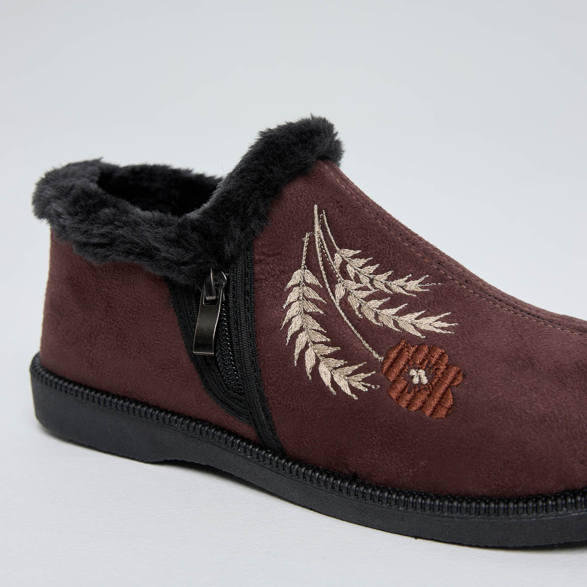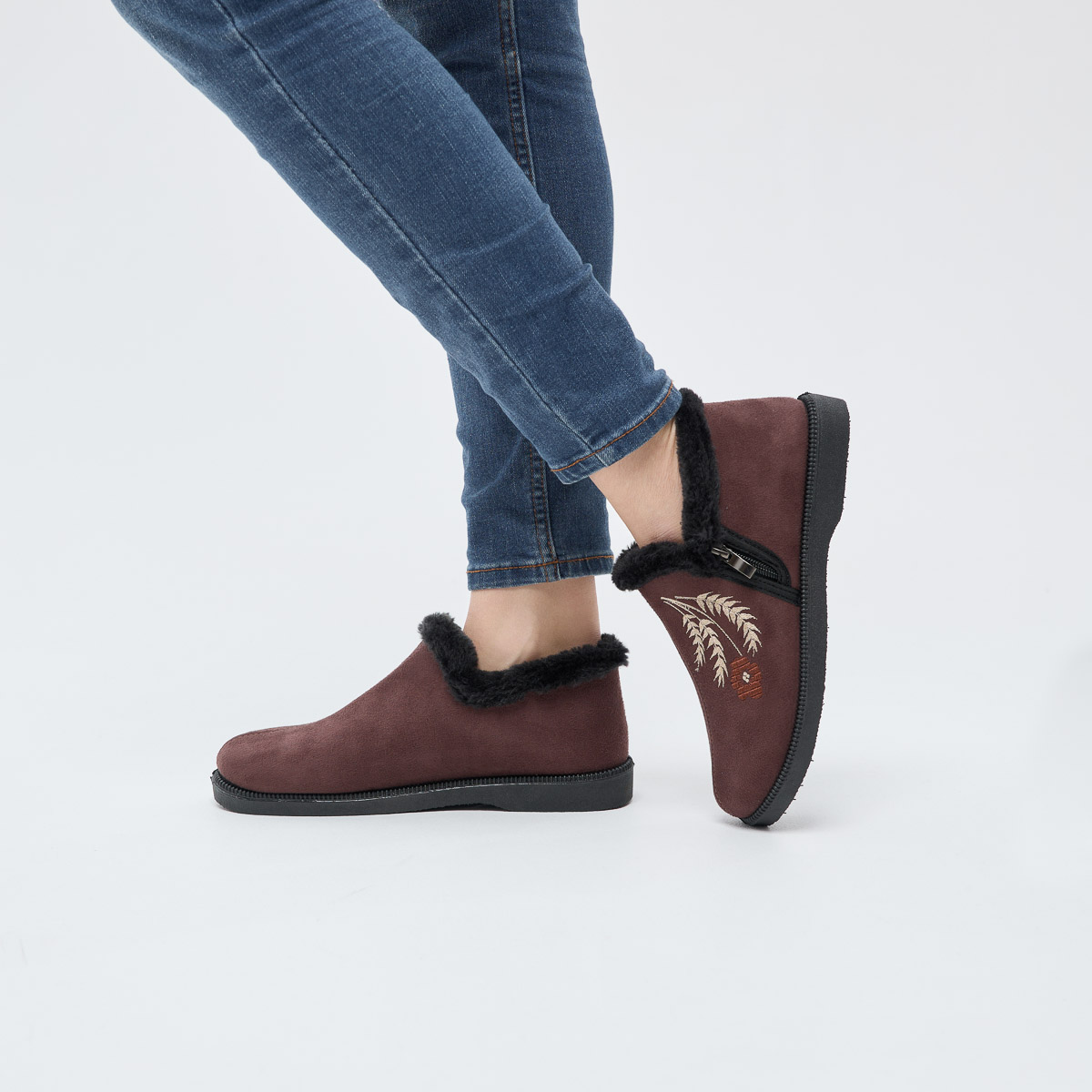 Напівчобітки Аніта, коричневі з вишивкою колоски