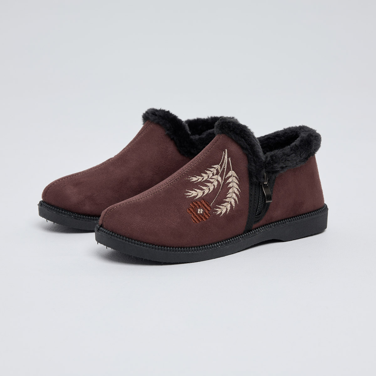 Напівчобітки Аніта, коричневі з вишивкою колоски