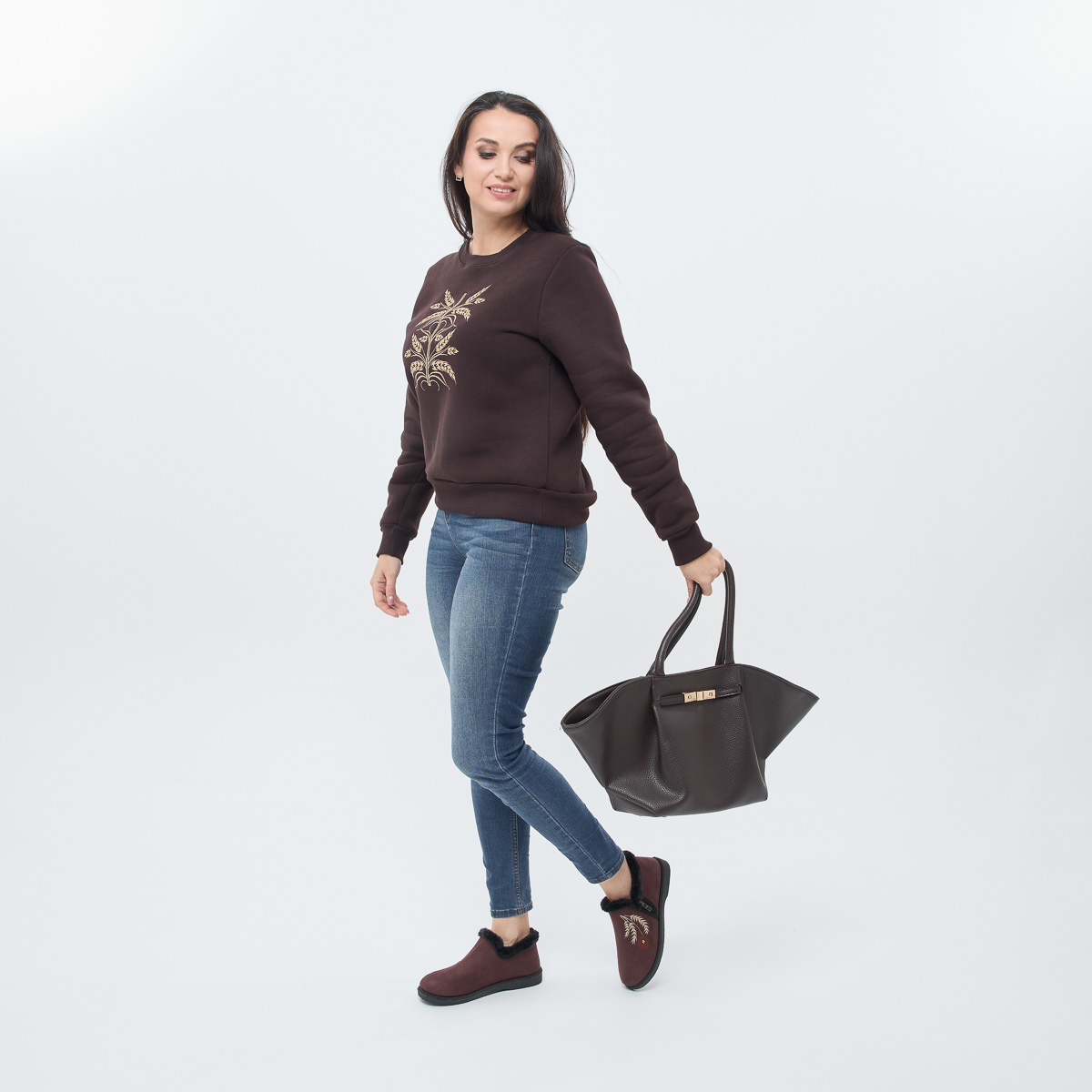 Коричневі з вишивкою колоски